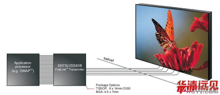 如下圖所示SN75LVDS83B的應(yīng)用: