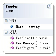 飼養員用Feeder類表示。由于三種動物吃的動物一樣,Feeder類必須擁有三個喂動物的公共方法:
