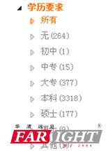 下圖的數據是嵌入式研發工程師招聘崗位對應聘人員的學歷要求:從中可以看到,學歷的基本要求主要集中在大專及本科學歷。這一點與很多人之前所認為的:嵌入式專業多為研究生等高學歷的要求不一樣。