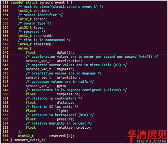 每個傳感器的數據由sensors_event_t結構體表示,定義如下: