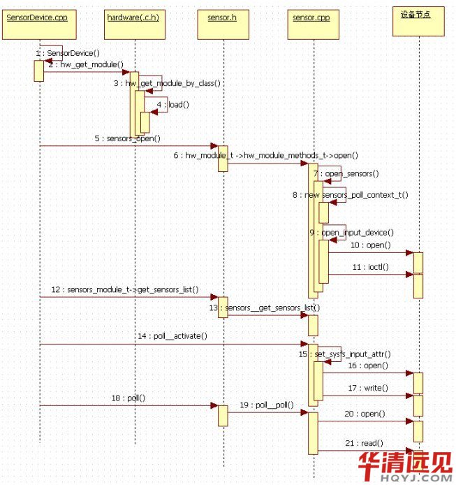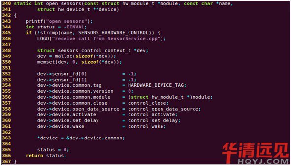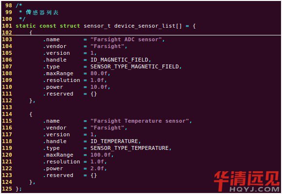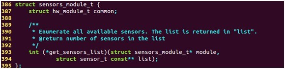 該接口的定義實際上是對標準的硬件模塊hw_module_t的一個擴展,增加了一個get_sensors_list函數,用于獲取傳感器的列表。
