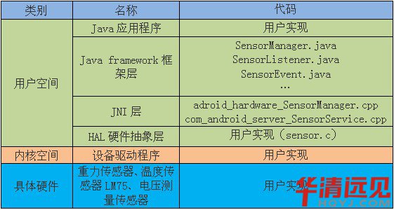 Android實現傳感器系統包括以下幾個部分: