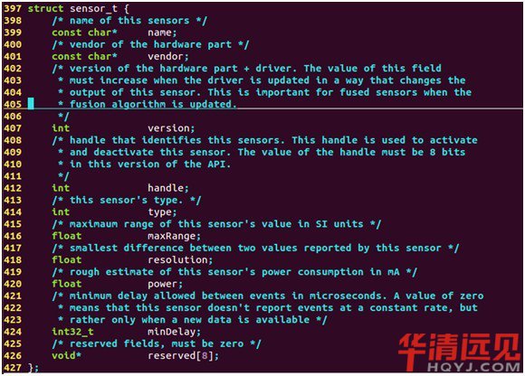 Google為Sensor提供了統一的HAL接口,不同的硬件廠商需要根據該接口來實現并完成具體的硬件抽象層,Android中Sensor的HAL接口定義在:hardware/libhardware/include/hardware/sensors.h