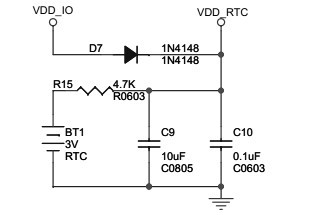 在一個嵌入式系統中,通常采用RTC 來提供可靠的系統時間,包括時分秒和年月日等,而且要求在系統處于關機狀態下它也能夠正常工作(通常采用后備電池供電)。它的外圍也不需要太多的輔助電路,典型的就是只需要一個高精度的32.768kHz晶體和電阻電容等,如圖1所示。