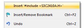 嵌入式開發中我們把常用的寄存器寫到一個頭文件中,每次使用的時候直接包含就可以。也有很多集成開發環境會提供這樣的芯片特殊寄存器頭文件,比如在keil中創建arm7三星s3c2410芯片相關的工程,點擊鼠標右鍵可以添#include <S3C2410A.H>頭文件。但不是所有芯片都支持。