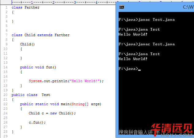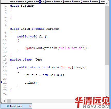 這個例子非常簡單,有一個子類Child繼承于父類Father,然后在測試類Test中使用子類引用。調用子類中的fun方法,執行結果和我們預料的一樣: