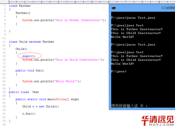 this代表本類引用,super代表父類引用,構造器中亦是如此。看實例: