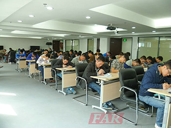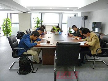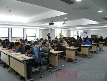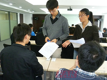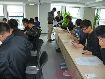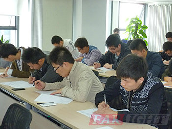 圖七、44位學員在銀河電子的會議室里埋頭答卷,場景蔚為壯觀 |