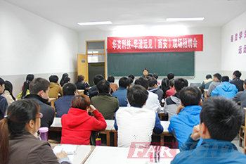 10月29日上午9點30,上海中和軟件有限公司李經理、西安華炎科技人事主管等一行四人如約到來,隨即宣講會現場響起了熱烈的掌聲。面對參會學員的熱情,李經理介紹了這次招聘會的流程,依次是:企業文化宣講、筆試、面試,其中筆試環節分為邏輯測試和專業知識測試。之后,李經理根據宣講會流程依次開始進行了宣講,從企業文化、管理制度、社會福利、工資待遇等每位學員關注的問題進行了介紹。讓每位參會學員深入了解企業的情況,去除學員的疑惑。