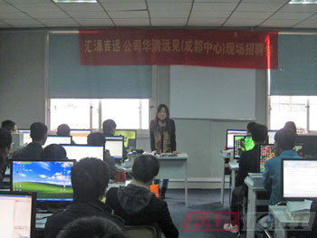 本次匯源吉迅招聘團隊趕在12071期學員畢業前,搶先對成都中心在讀12071期及剛畢業的1206期就業班學員進行了三個多小時的現場招聘活動。當天來到成都中心的招聘團一行三人,包括HR曾小姐,王先生,以及技術負責人代先生。本次招聘受到華清遠見成都中心的熱烈歡迎!