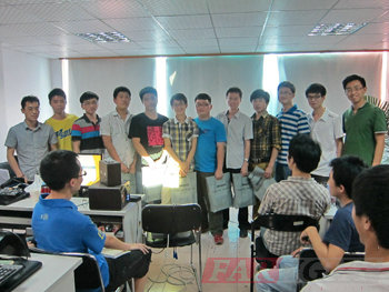活動過程中被邀請的不同情況的老學員,結合自己的工作及公司所處的行業等方面的經驗感想,與臺下師弟們進行了知無不言,言無不盡分享交流。如:有著一年多工作經驗的老學員景利濤,帶著引水思源的感恩之心與大家分享了自己這一年多來的蛻變經歷:“做自己能做的”、“堅持學習,循序漸進”終讓他從一個“打雜”的應屆生到了今天能獨當一面的工程師;或是老師眼中的得意門生——優秀應屆畢業生李文杰,分享了自己“帶著老板的心態打工”“我不被動等事做,而是催著經理做事”“小公司更會把人練成全才”等工作近半年后的蛻變經歷:抑或是擅長自我推銷的老學員劉刁毓,分享的關于自己如何與面試官、同事推銷自己,融入團隊的經驗分享;或者是對軍工行業較資深的老學員黃飛,結合自己的行業工作經驗,與大家分享了一些相關的行業情況及軍工企業的介紹;再或是深居外包公司的老學員吳瑞和進駐外企老學員任安順,分別向大家分享了外包和外企兩種類型公司的情況……同時,臺下正處于不同學習蛻變階段的在讀學員,也將自己目前的學習狀態,及對以后工作的不同想法及認識與臺上師兄充分交流。