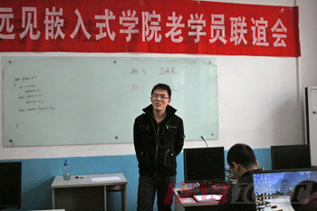接下來跟同學(xué)們分享經(jīng)驗(yàn)的是夏龍偉同學(xué),夏同學(xué)來華清之前從事過相關(guān)的硬件開發(fā)工作,可是自己覺得硬件開發(fā)之后的發(fā)展不如嵌入式長遠(yuǎn),所以經(jīng)過多方考察之后選擇來到華清進(jìn)行培訓(xùn),夏同學(xué)首先勸解同學(xué)們在找工作之前要把心態(tài)放平和,告訴自己不管早晚都能找到一份合適自己的工作,并且要對自己有正確的定位,有一個明確方向未來發(fā)展才會比較流暢,也不要一開始就盲目海投,把好的機(jī)會都浪費(fèi)掉,另外,在每次筆試之前把就業(yè)老師給的面試寶典看一下,把筆試題做一下,筆試基本都可以通過的。