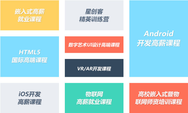 集團(tuán)緊跟科技發(fā)展潮流,專注于高端IT開發(fā)人才的培養(yǎng)。目前線下培訓(xùn)課程涵蓋嵌入式開發(fā)、物聯(lián)網(wǎng)開發(fā)、移動(dòng)互聯(lián)網(wǎng)開發(fā)(Android、iOS、HTML5、UI、VR/AR)三大方向。從長(zhǎng)期就業(yè)培訓(xùn)到短期高端企業(yè)內(nèi)訓(xùn),以及高校師資隊(duì)伍培訓(xùn),課程涵蓋技術(shù)方向廣泛,能夠滿足不同人群的學(xué)習(xí)工作需求。集團(tuán)擁有一支超過百人的師資團(tuán)隊(duì),不乏專家及資深技術(shù)開發(fā)人員。每年在課程研發(fā)、課程更新方面投入巨大的人力物力,目前公開出版教材90余本。在技術(shù)實(shí)力以及實(shí)驗(yàn)設(shè)備配置方面均處于業(yè)內(nèi)地位。
