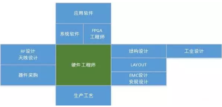 硬件工程師在研發(fā)團(tuán)隊(duì)中重要的一員,硬件產(chǎn)品的研發(fā)團(tuán)隊(duì)大致組成如下圖所示: