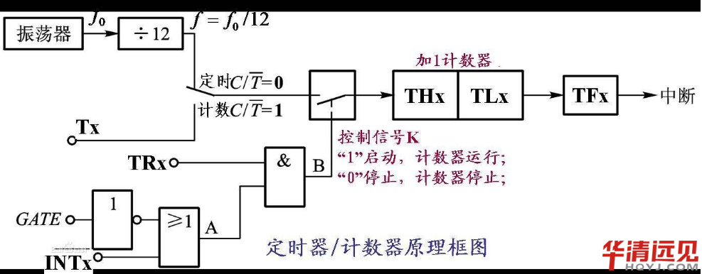 GATE=0時,僅由TR0,TR1置位分別啟動定時器T0、T1。
