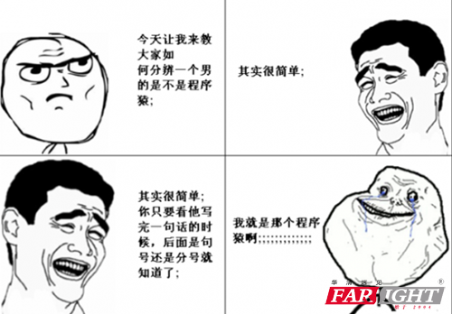 江湖上流傳著這樣一首詩: 床前明月光,我會寫代碼;千山鳥飛絕,我會寫代碼; 松下問童子,我會寫代碼;春眠不覺曉,我會寫代碼; 白日依山盡,我會寫代碼;紅豆生南國,我會寫代碼; 鋤禾日當(dāng)午,我會寫代碼;欲窮千里目,我會寫代碼! 沒錯!相信聰明的你已經(jīng)想到以上所指的人物是誰了!他們!就是苦逼又可愛的程序員。不用說,在多數(shù)人眼中,程序員都是這個樣子的... ![]() 套頭衫+牛仔褲+人字拖可以說是他們的標(biāo)配。在他們眼里,一個牛×的程序員是根本沒有時間打理自己的,即使“聰明絕頂”。 雖然程序員的打扮普通,但他們很擅長解決問題。不是在找BUG,就是在找BUG的路上。 ![]() 他們常常裝X,被文科生奉為大神。 他們也很單純,“多少錢?1000?那湊個整,給你1024吧。”。 他們有時很2。 ![]() 他們也很勇敢,敢于正視淋漓的error,敢于直面慘淡的愛情,更有一顆忍受旁人冷嘲熱諷的堅(jiān)強(qiáng)之心。 ![]() 他們的特征那么明顯,僅一個符號就能分辨。 ![]() 他們也是世界上執(zhí)著的人,沒有之一。明明是為了學(xué)(勾)習(xí)(搭)知(妹)識(子)而來,后卻開始和別人辯論學(xué)術(shù)問題。就像咱們?nèi)A清的這位“學(xué)員”一樣,在討論問題的道路上越走越遠(yuǎn),已經(jīng)到了忘我的境界。后,在老師的幫助下,成功贏得了這場辯論~ 在此,華妹祝程序員們1024節(jié)日快樂!愿你們能一直在這條執(zhí)著的路上堅(jiān)持下去。用愛發(fā)電,用屁比心~愛你們~~ ![]() 特別鳴謝: 沒日沒夜剪輯視頻的視頻組成員(為你們的創(chuàng)意點(diǎn)個大大的贊); 御用男主角兼華清好同事-小柯老師; 戲份全都集中在后幾分鐘的嵌入式講師-高老師; 臺詞和正臉都不給的群眾演員-華清有前途的學(xué)員們! 相關(guān)資訊