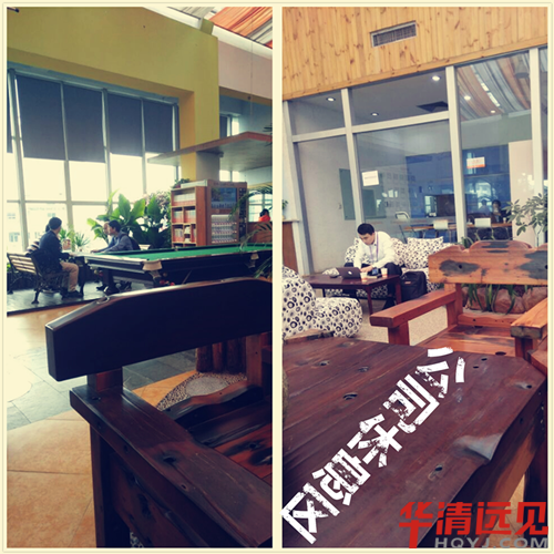酒足飯飽過后,我們來到公司休息區。參觀一下公司文化和環境,絕對美滋滋!桌球,飲料,沙發,嘖嘖~~還有這古木做的座椅有檔次。