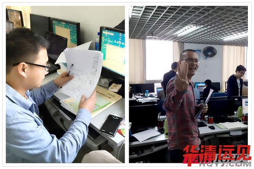 圖為:華清遠見郭老師和就業(yè)主管孫老師為學員分發(fā)筆試考卷