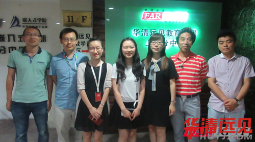 緊張的面試以及面試官碰頭會議結(jié)束之后,已經(jīng)接近下午6點了,企業(yè)人員和就業(yè)老師一起在華清遠見上海中心的大門處合影留念,引得還未結(jié)業(yè)的同學(xué)們紛紛駐足圍觀。