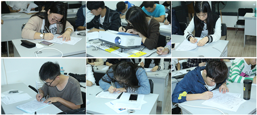 (認真答卷的學員們)