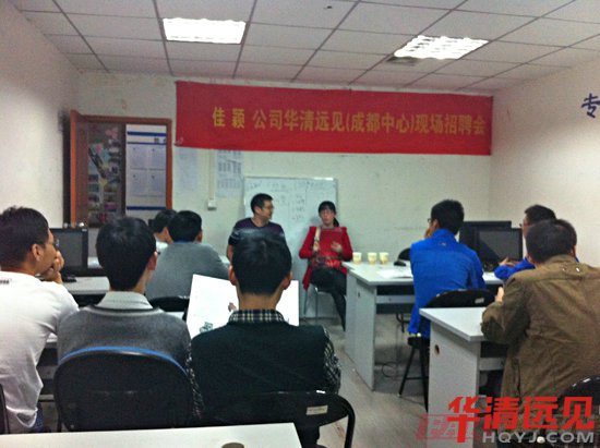 公司對本次專場招聘很重視,公司翟總于10月10日親自到華清遠見成都中心考察參觀,與成都中心的學(xué)術(shù)經(jīng)理潘老師深入的交談,敲定招聘人員的要求。10月23日專門召開公司招聘工作準(zhǔn)備會議。10月24日由公司郭副總帶隊一行三人到成都中心舉辦專場招聘會。