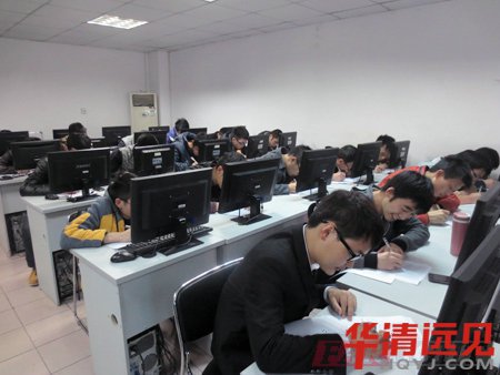 圖二、率先網絡科技招聘會現場,學生認真做筆試題