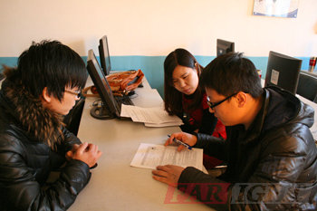 招聘會現場設在華清遠見北京總部的授課教室,我校七月份入學的三個班級二十多名待就業學員準時參加此次招聘會,招聘預定兩點開始,但同學們早早來到會場做好準備,等待工作機會的到來。招聘會開始后先由招聘負責人李女士進行了一個關于企業的宣講,之后技術主管辛經理也針對學員們比較關心的技術方面問題一一作了介紹,之后的面試采取的形式是封閉式一對一面談,排在后面的學員在教室外焦急的等待,陣陣寒風卻吹不散同學們的熱情,而步入會議室的同學從初的滿心忐忑到結束后的自信微笑,都證明了華清人的專業和優秀可以得到業界專業人士的認可。