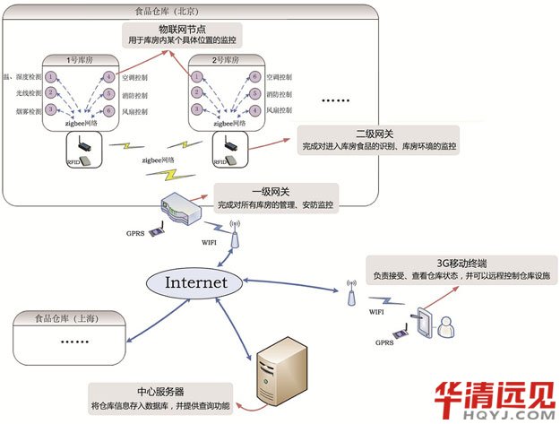 設計一套物聯(lián)網(wǎng)系統(tǒng),實現(xiàn)對分布于各地(北京、上海……)的食品倉庫,以及各個具體庫房的監(jiān)控、管理。