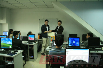 圖4、學院院長季老師為優(yōu)秀學員頒發(fā)獎品一 |