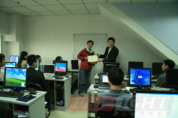 結(jié)業(yè)典禮后,學院頒發(fā)了優(yōu)秀學員獎,這期的優(yōu)秀學員分別由綜合評分高的林偉、汪暉、馬靜三位同學獲得,院長季老師為學員頒發(fā)了證書和獎品。
