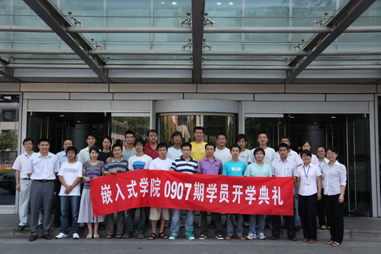 開學典禮的后,0907期全體師生在學院大樓前合影留念。一張張鮮活的面孔,讓我們回憶起自己的學生生涯。四個月的時間,轉瞬即逝。希望同學們能夠抓住每一分,每一秒,讓自己早日成為嵌入式行業的精英,實現自己的人生轉變。