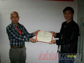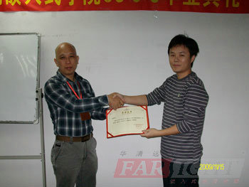 圖3、學(xué)術(shù)總監(jiān)梁老師給優(yōu)秀學(xué)員謝強(qiáng)頒發(fā)證書 |