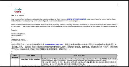 圖一 思科公司發送的PO Mock Up-China文件