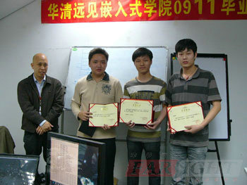 2010年4月20日下午13:30分,華清遠見教育科技集團深圳中心Linux&Android就業班0911期班結業典禮在小教室正式開始。出席此次結業典禮的老師有:華清遠見教育科技集團深圳中心校長梁老師,教師代表范老師,指導老師譚老師和就業指導老師兼班主任齊老師。