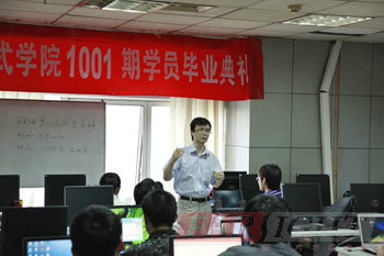 結業典禮開始后,先由華清遠見教育科技集團院長季老師致辭,季老師首先對1001期學員為期四個月的學習做出肯定,并要求學員系統總結和回顧了學員們四個月的學習過程及取得的學習成果,同時季老師還鼓勵學員們對自己要充滿信心,要不斷的學習,對自己行業發展要充滿信心,并歡迎各位同學在工作后繼續與學院保持聯系,把華清遠見教育科技集團作為未來職業發展的充電大本營和基地。