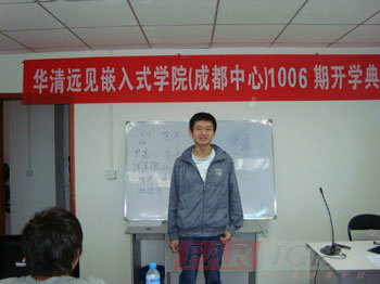 典禮過程中,陶老師的上臺,為各位學員分清了嵌入式行業(yè)形勢,展望行業(yè)未來和樂觀的發(fā)展前景,大大堅定了大家對嵌入式行業(yè)發(fā)展的決心,加上華清遠見這樣一個良好的平臺,更增強了學員們的信心。而接下來教學總監(jiān)楊老師生動幽默的發(fā)言,也贏得了在場各位師生的認可,他倡導一種無處不在的交流溝通和踏實謙遜于一體的開放的學習心態(tài),一番意味深長的話語,不僅為大家現(xiàn)在的學習生活,更為以后的工作生活作了積極的引導,使人豁然開朗。后,全部學員還逐一上臺作了自我介紹,他們中有的來自山東,有的來自重慶……四面八方;有的是有工作經(jīng)驗的,有的是在校未畢業(yè)的大學生,大家來自不同的地方,不同的家庭,有著不同的經(jīng)歷,不同的性格,但今天卻因?qū)η度胧接兄餐膼酆门c追求,而相聚于華清遠見,既是華清遠見的實力使之,也是大家的緣分所致,相信在華清遠見未來四個月的學習生活中,他們將成為共同奮戰(zhàn)親密無間的戰(zhàn)友,建立起濃濃的兄弟情,深深的朋友誼!后,希望華清遠見成都中心1006期就業(yè)班的學員能在華清遠見的團隊中,開心學,用心學,后學有所成,學有所用!