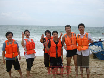 一路上,笑聲不斷,后來有點塞車也沒有影響大家的心情,所以即使花了2個多小時的時間才到,大家的興致還是很高。不到12點,到達了我們的目的地西沖沙蘭仔海濱浴場。望著浩瀚的大海,大家的心情激動到了極點,都迫不及待的想投入大海的懷抱,未放下包包就問道:“哪里可以換衣服的?”真是典型的年輕人啊——沖動!班主任心里想。對于這里也是初次到來西沖的她來說,也是沒有任何概念,只能求助于那里的店老板了。