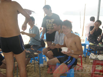 相比在海洋里游弋、感受被海浪拍打的沖擊感,燒烤的吸引力就大大的降低了。大家都已經迫不及待的換上自己的泳衣,沖入了大海,享受著炎炎夏日里大海帶來的一份清涼。長時間沒有在海洋里游泳,下了水沒一會的張洪文說:“唉,好久沒游了,一會就累了。”呵呵,也許是吧。望著廣闊無邊而又在岸邊泛著白花的海浪,“這次是難得的機會,我要游個夠本!”他心里想,隨即又奔向大海…….