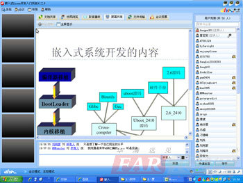 2010年5月中旬,為了讓更多嵌入式技術愛好者能夠獲得與任僑偉老師直接進行技術交流的機會,華清遠見專門在業(yè)內知名的嵌入式開發(fā)名家大講堂中安排了Linux內核及系統(tǒng)開發(fā)專題技術講座,該講座采用網絡直播方式,由任僑偉老師親自擔綱主講,分享《Linux內核修煉之道》一書的創(chuàng)作歷程,探討Linux內核開發(fā)的相關技術及入門方法,為大家打造一個無地域界限、實時互動的專業(yè)技術交流平臺,從而幫助廣大的朋友真正實現近距離、實時與業(yè)內頂尖高手相互過招、共同切磋的機會!在連續(xù)兩場的活動中,每場都有將近150人同時在線參與活動,與任老師進行了零距離的交流和溝通。