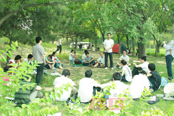 一大早,老學員們就彼此相約在奧林匹克森林公園的門口。曾經的同窗好友,再次相聚在一起,溫暖而熟悉的氛圍中,老學員們開心地交談、打鬧,在這樣一個北京夏日的早晨,獲得了徹底的放松和休整。“唉,大宇,我們都在這呢!”,“哎喲,這是剛換的發(fā)型啊,夠酷的!”,“近忙嗎?”,“昨天晚上那個誰不是說能來嗎?這會兒人呢?”,“美女,你不是出差了嗎?”,“為了見你,得趕回來啊,呵呵!”這邊正熱烈地聊著,那邊學院的老師們開始招呼大家分發(fā)礦泉水和飲料,后勤保障工作做得相當到位啊!