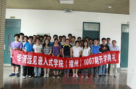 2010年7月9日,華清遠(yuǎn)見福州校區(qū)的首期嵌入式Linux&Android就業(yè)班的開學(xué)典禮在福州大學(xué)專業(yè)實(shí)驗(yàn)室隆重舉行。華清遠(yuǎn)見總裁季久峰先生、講師曾老師、華清遠(yuǎn)見福州校區(qū)負(fù)責(zé)人張老師及福州合作院校的各位共同出席了本次開學(xué)典禮。30多名來(lái)自福州大學(xué)、福州農(nóng)林大學(xué)、閩江學(xué)院等華清遠(yuǎn)見合作院校的通信、電子、自動(dòng)化、計(jì)算機(jī)等專業(yè)的學(xué)生,經(jīng)過(guò)嚴(yán)格的入學(xué)測(cè)試和層層面試選拔,終成功加入到該班進(jìn)行學(xué)習(xí),在接下來(lái)4個(gè)多月的時(shí)間內(nèi),他們將經(jīng)歷華清遠(yuǎn)見提供的專業(yè)嵌入式實(shí)戰(zhàn)強(qiáng)化訓(xùn)練及項(xiàng)目實(shí)訓(xùn),并終被推薦到華清遠(yuǎn)見在福州及全國(guó)各地的專業(yè)嵌入式合作企業(yè)的對(duì)應(yīng)工作崗位上,從事專業(yè)的嵌入式Linux研發(fā)工作。