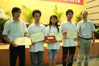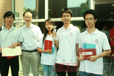 “博創(chuàng)杯”電子大賽中獲獎同學與張文濤老師合影