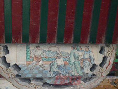 順著前行方向我們一行來到頤和園內世界第一長的畫廊,大家邊走邊仔細欣賞著畫廊上面的彩繪,真的是巧奪天工、惟妙惟肖,每幅彩繪均不相同,每一幅均有一個故事。據介紹長廊彩繪屬于“蘇式彩畫”,是木結構建筑上的裝飾藝術。被萬壽山腳下一條長達728米的長廊,猶如一條彩紅把多種多樣的建筑物以及青山、碧波連綴在一起。走累了,大家就選擇在長廊里休息,悠閑自在,看著眼前碧波蕩漾的昆明湖,一掃夏日的炎熱。