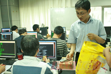 9月20日,華清遠見的幾位工作人員在班主任王老師的帶領下,滿懷著喜悅的心情,將每一塊月餅發送到學院在讀的每位同學手中,也同時將一份關懷送到每個同學的心中。看到同學們迫不及待的打開包裝、開始食用,各位老師的內心都非常滿足。有的同學開心的笑道:我的月餅是雙黃蓮蓉,太棒了,我喜歡吃這個口味!有的同學手拿兩塊餅說:這是我今年第一塊月餅,非常感謝老師!甚至有的學員,藏起來月餅之后,大聲說道:老師我這少發一塊。看到同學們如此快樂的心情,我們的心里更美。
