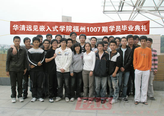 2010年10月26日下午14:30,華清遠見教育科技集團福州中心1007期學員在福州大學新校區迎來了他們的畢業典禮。華清遠見教育科技集團專業講師楊老師和華清遠見福州中心教務及就業指導老師張老師均出席了本次典禮。