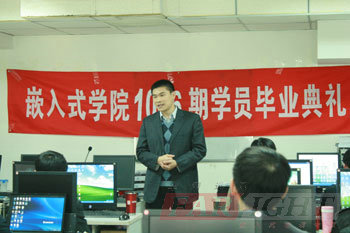 在濃濃的離愁別緒中,華清遠見教育科技集團院長季老師開始了面對1006期學員們的臨別贈言,季老師首先總結并肯定了學員們四個多月的學習成果。作為一個非常優秀的班集體,1006期從開班到結束一直保持著非常好的學習氛圍,一直都是各位專業講師們特別滿意的班級,而作為一個非常團結的班集體,1006期在各個方面所表現出來的凝聚力,讓華清遠見的老師們始終相信:這樣的一支班集體,在未來的工作上也一定會是出色的群體。在講話中,季老師專門鼓勵大家一定對自己要充滿信心,未來一定可以實現更多的夢想,同時季老師也歡迎每位學員無論以后在工作上還是生活上,有需要幫助的時候可以回到華清遠見,各位老師一定為傾力提供支持。在嵌入式行業迅猛發展的背景下,讓我們一起相約:在未來五年內,共同成長為嵌入式行業的中流砥柱。祝愿每一位學員都能夠找到一份理想的工作。