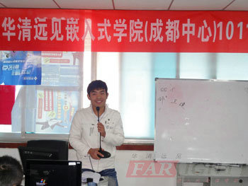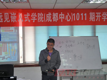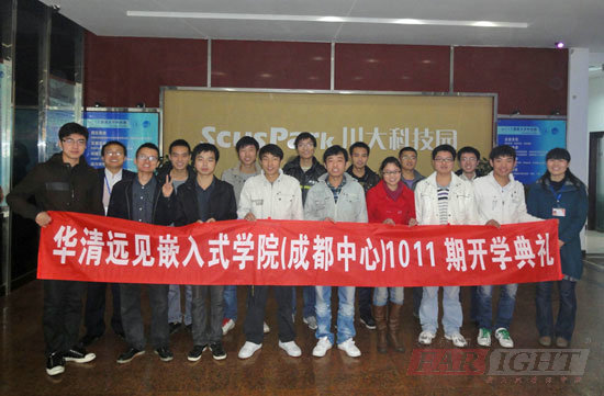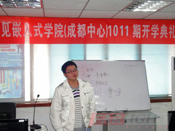 在結束了十天的C語言基礎補習后,2010年11月29日,華清遠見成都中心1011期班正式進入了嵌入式Linux專業課程的學習階段,當天上午,1011期的開學典禮在成都中心第一嵌入式室實驗室隆重舉行。華清遠見成都中心總負責人陶老師,教學負責人楊老師,以及專業授課老師王老師,課程咨詢老師劉圣等均出席了本次開學典禮。