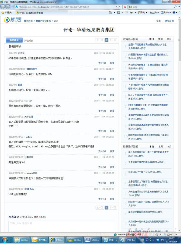 近日,筆者從騰訊網“2010回響教育年度總評榜”獲悉,在“2010IT教育十大影響力品牌”的總評榜上,華清遠見教育科技集團作為唯一的專業嵌入式培訓機構入選,與華清遠見同時入圍的還包括用友管理軟件學院、文達電腦集團、北大青鳥IT教育等綜合IT培訓機構。此次華清遠見的入圍,也充分說明了隨著物聯網、云計算成為下一個10年IT產業發展的主旋律,嵌入式系統作為這些產業應用技術中核心、基礎的部分,也已經成為IT產業發展的重要方向,而作為產業發展根本的嵌入式專業人才的培養問題,更是日益受到大家的普遍關注。