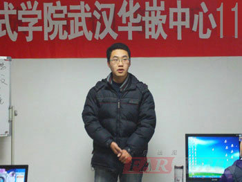 在李校長的致辭結束后,由華清遠見武漢中心的班主任李老師發言,李老師鼓勵大家要端正學習態度,掌握學習方法,充分利用各個方面提供的資源,讓自己順利走上嵌入式工程師的高級崗位,同時李老師也預祝大家能夠早日實現自己的夢想。后,李老師表示,大家以后在學習中、生活中有什么意見或者建議、或者遇到什么問題和困惑,可以直接向他反映,中心會盡一切努力,為大家創造一個融洽、愉快的氛圍,幫助大家順利完成4個月的學業。