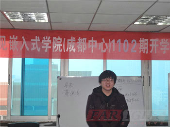 典禮第一項首先由華清遠見成都中心的總負責人陶金華校長為典禮致辭。在講話過程中,陶校長首先結合自身多年專業從事職業規劃管理的結驗,以及華清遠見多年來一直秉承的教學管理理念,向在座的各位1102期學員分享了一種成功的方式“刻苦+方法+堅持+福得=成功”,接著,陶老師還就目前嵌入式行業的發展,及華清遠見自身的發展狀況進行了具體的分析和介紹。由過去幾年嵌入式技術給人們生活帶來的種種便捷,到目前甚至未來十余年社會生活對涵蓋甚廣的嵌入式行業的迫切需求,讓在座的1102期的各位新學員更加明確了學習的目標,也同時給足了大家奮斗的動力。而這樣的一份工作,也會因更多社會價值的創造,更顯得樂趣與大義,必將會成為一個人可以為之奮斗終身的事業。而北京華清遠見在行業十余年來的用心經營和卓越的貢獻,正是在為更多志同道合的嵌入式愛好者,進入這個蓬勃發展的行業或是得到更長足的發展奠定基石,創造一種機遇和優質的平臺!